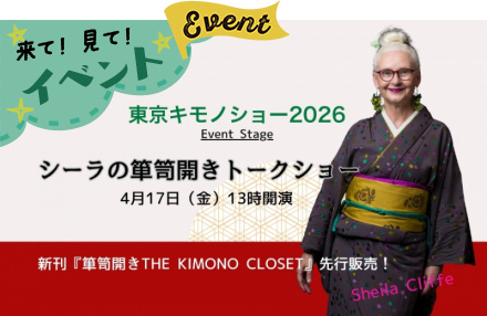 ・シーラさんが東京キモノショーに登場!>4/17「箪笥開き」トーク&新刊先行販売