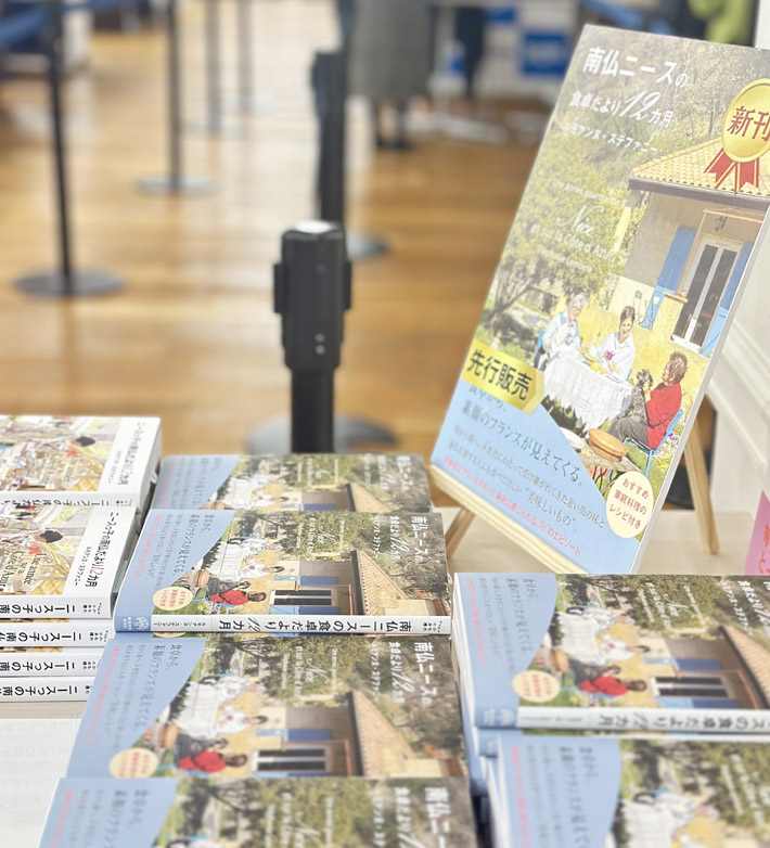 丸善 京都本店で、新刊『南仏ニースの食卓だより12カ月』の先行販売が始まりました。フランス政府公認ガイドのルモアンヌ・ステファニーさんが、等身大のフランスの暮らしと、南仏をもっと身近に感じられる旅のヒントを綴る「南仏12カ月シリーズ」の第2弾。11月下旬の全国発売に先駆けて、いち早く新刊を手に取るチャンスです。