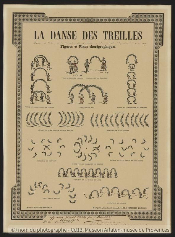 踊りの振り付けや手順については、オック語詩人トゥルバが詳細に書き残している。手書きの微笑ましいイラスト付き挿絵は、現在の舞踊のあり方と全く変わらない。そこには、確かに、地域文化への愛おしさがあふれている。(つづく)