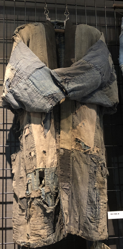 各地の郷土資料館や歴史民俗資料館を訪れると、既製服が普及する以前、昭和半ば頃までに実際に着られていた作業着を見ることができます。「ぼろ刺し」とか「べた刺し」(ぎっしりと一面に刺し縫いすること)「さしぼっこ」(ぼろ布を当て刺し縫いすること)などと呼ばれるそれらの衣服は、端切れを継ぎ合わせて、細かな差し縫いで補強したものです。