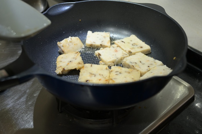 フライパンで蘿蔔糕(大根もち)を焼く