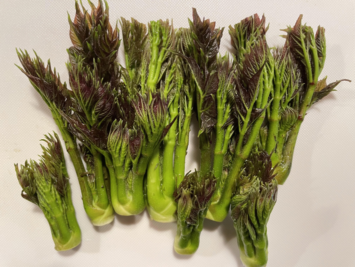 冬には大ぶりの大根、春になった今の時期は絹さや、ブロッコリー、そしてアシタバなどが。その合間にはタラの芽、フキノトウ。夏になるとびっきり新鮮なトマトやキュウリ、そして秋ともなれば原木シイタケや自然薯などなど。季節の恵み、島の恵み、そして島民の皆さんの気持ちに感謝するばかりです。