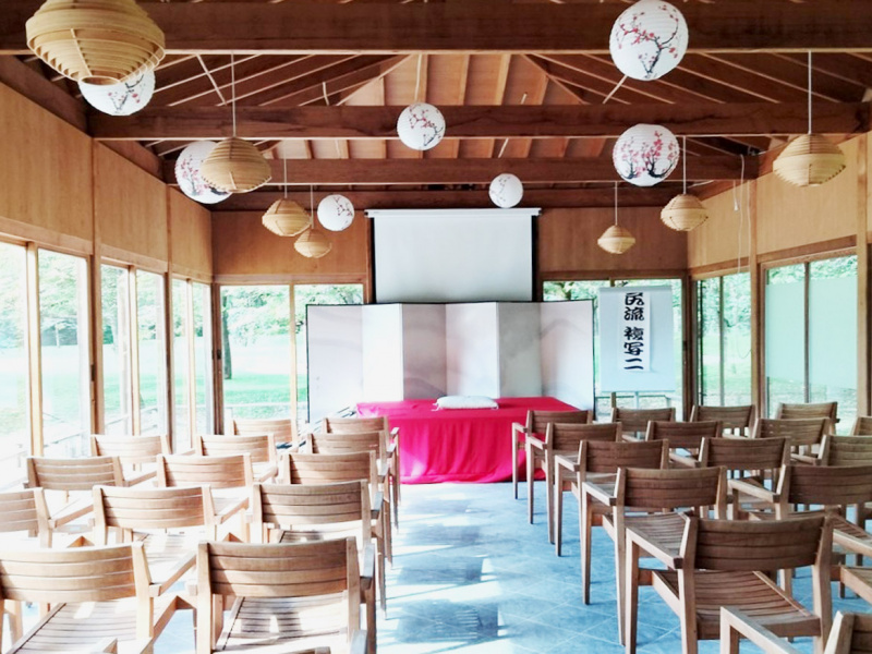 初口演の会場となったハッセルト日本庭園のセレモニーハウス
