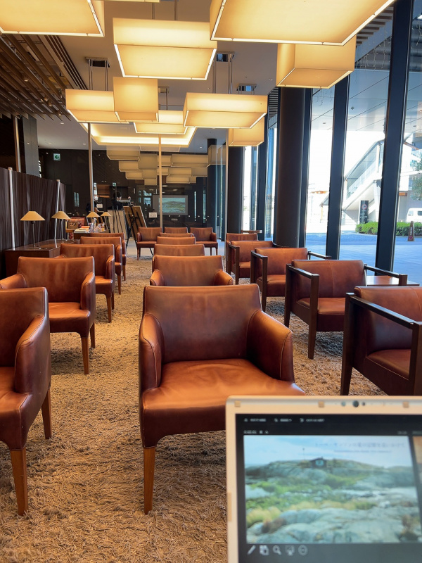 イベント会場となった入り口近くのロビーは、ゆったりした椅子とじゅうたんが心地よい空間。日曜の午前中にもかかわらず、たくさんのお客様が参加してくださいました。