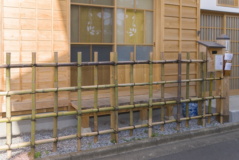 竹で編んだ四つ目垣が敷地を囲む。ご近所さんとも顔の見えるお付き合いができる