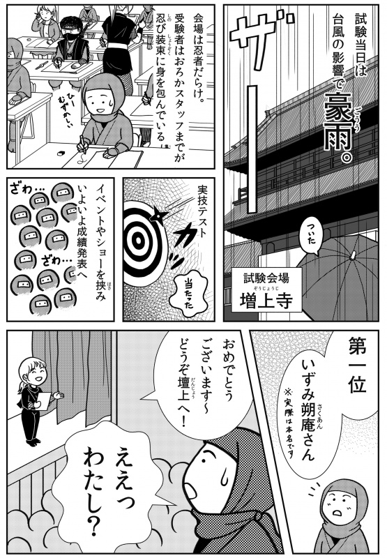 それにはまず、「忍者かもしれない人たち」にお会いしてみるのが一番いいのかもしれません。初級といえど忍者検定には受かっているので「駆け出し忍者」くらいは名乗れるでしょう。せっかくなので「くノ一」もつけていいですか?